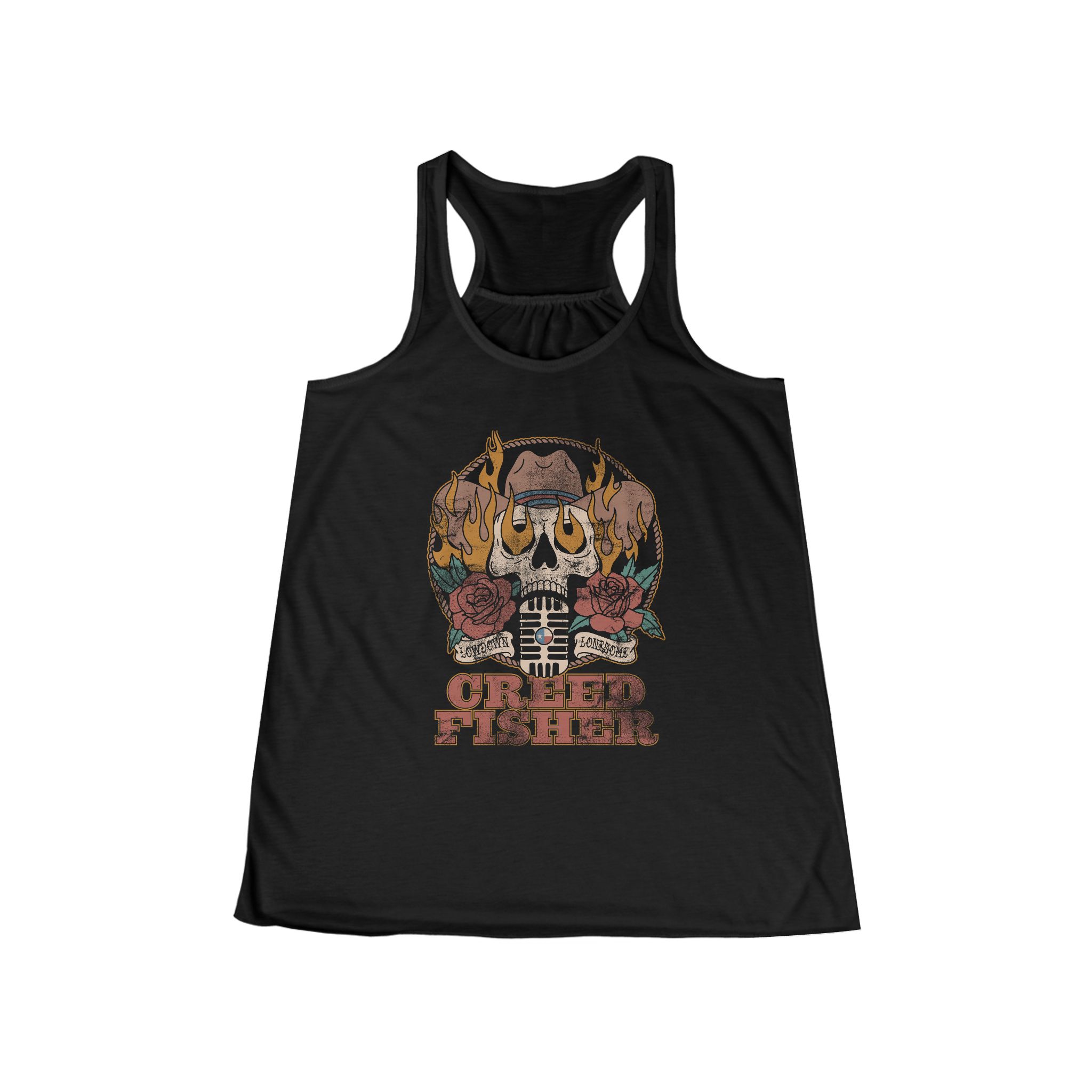 This women’s flowy racerback tank is the go-to tank for sporty types. It boasts a flowy look that flatters the silhouette.